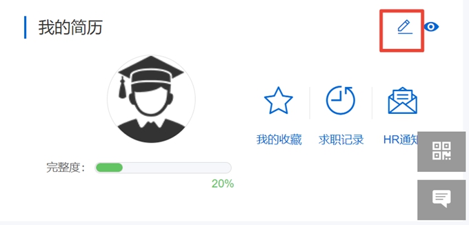 第四步:点击求职者个人信息页面右侧“我的简历”后的修改按钮。进行简历完善。