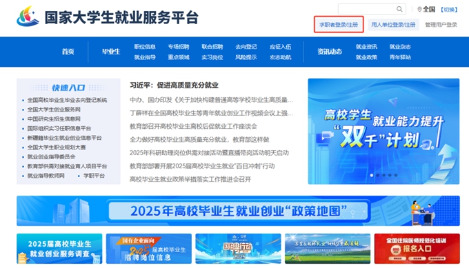 一、账号与登录 第一步:访问国家大学生就业服务平台网站(https://www.ncss.cn/),麦克劳务派遣点击首页右上方“求职者登录/注册”,进入用户页面,点击“立即注册”,填写注册信息,并点击立即注册,账号即可注册成功。或搜索并关注平台微信公众号“ncssfwh”,登录学信账号,获取求职应聘、就业指导等服务。