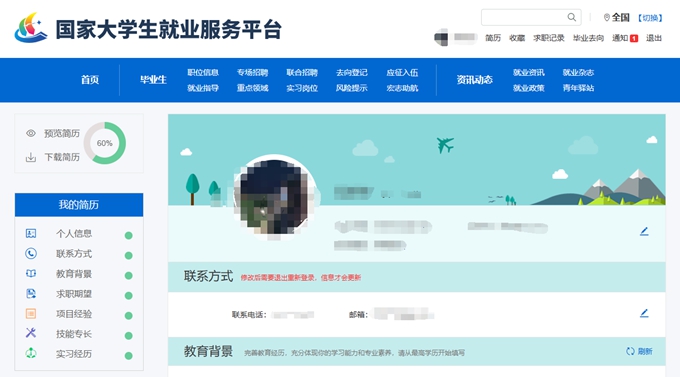 第三步:根据提示填写身份验证信息,确认验证。进入求职者个人信息页面。