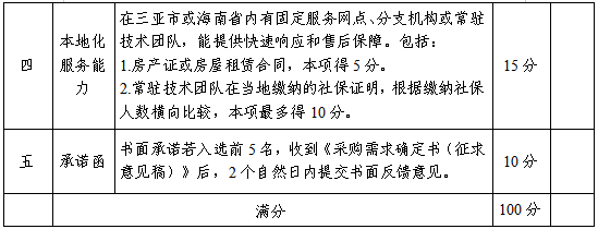 为科学、规范地完成中共三亚市委党校会务、教务、餐饮及物业劳务外包服务项目采购工作(以下简称“物业服务项目”),麦克人事代理确保采购需求公平、公正、公开且符合市场实际,根据《中华人民共和国政府采购法》及《政府采购需求管理办法》(财库〔2021〕22号)等相关规定,现发布本次采购需求调查征询公告。 一、项目概况 (一)项目名称:中共三亚市委党校会务、教务、餐饮及物业劳务外包服务项目 (二)项目内容:新校区与老校区的综合物业服务,涵盖设施维护、秩序安全、环境服务、会务接待、餐饮服务及学员住宿保障等。 新校区建设项目位于吉阳区学院路龙泉山谷。总用地面积129282.91平方米(约193.92亩),总建筑面积99132.01平方米(其中,地上建筑面积73621.15平方米,地下建筑面积25510.86平方米)。用地控制性指标为建筑限高24米、绿地率≥45%、建筑密度≤20%、容积率≤0.6,主要建设教学中心、会议报告中心、对外党际交流中心、图书信息与教务管理中心、学员食堂、文体中心、A号和B号学员宿舍楼、后勤用房等9栋单体。截至目前,新校区主体建筑安装工程完成约95%。预计2025年11月竣工交付,2025年12月31日全面启用。 (三)预算情况:项目估算金额1880万元。 (四)调查目的:通过市场调研,优化采购需求的技术参数、服务要求及成本构成,避免排他性或倾向性条款,确保符合市场实际和公平竞争原则。 二、资格要求及提交材料 (一)报名条件 1.符合《中华人民共和国政府采购法》第二十二条规定的条件:具有独立承担民事责任的能力;具有良好的商业信誉和健全的财务会计制度;有依法缴纳税收和社会保障资金的良好记录;参加政府采购活动前三年内,在经营活动中没有重大违法记录。 2.本项目不接受联合体参与需求调查。 (二)提交材料(按照本公告评分表逐项准备材料,均需加盖公章) 1.单位综合实力相关证明材料。 2.2023年1月以来类似项目业绩证明材料。 3.《物业服务项目初步建议书》(内容应具有针对性,字数约2000字)。 4.本地化服务能力及证明材料。 5.承诺函。书面承诺收到《采购需求确定书(征求意见稿)》后,2个自然日内提交书面反馈意见。 6.联系人信息表(含单位名称、联系人、职务、联系电话及电子邮箱)。 (三)提交时间 1.文件提交时间(送达时间):自公告发布之日起5个自然日,于2025年10月10日18:00前送达至市委党校。 2.接收方式:现场接收。提交材料必须确保封装完好无损,并在文件提交结束时间之前送达指定地点。 3.文件份数:一式五份。 三、遴选流程与评分标准 本次调查采用“公开报名、量化评分、择优遴选”的原则,确保过程透明、公平。 (一)遴选流程: 1.报名截止后,我校将成立评审小组,根据下方评分表对所有符合要求的报名单位进行综合评分,并按照得分由高至低进行排序,确定前5名单位作为正式需求调查的对象。若符合要求单位不足5家,则至少保证3家单位入围。如无法满足至少3家单位的要求,将重新启动遴选程序并发布公告。 2.遴选结果将在中共三亚市委党校官网公示。 (二)评分表(总分100分)