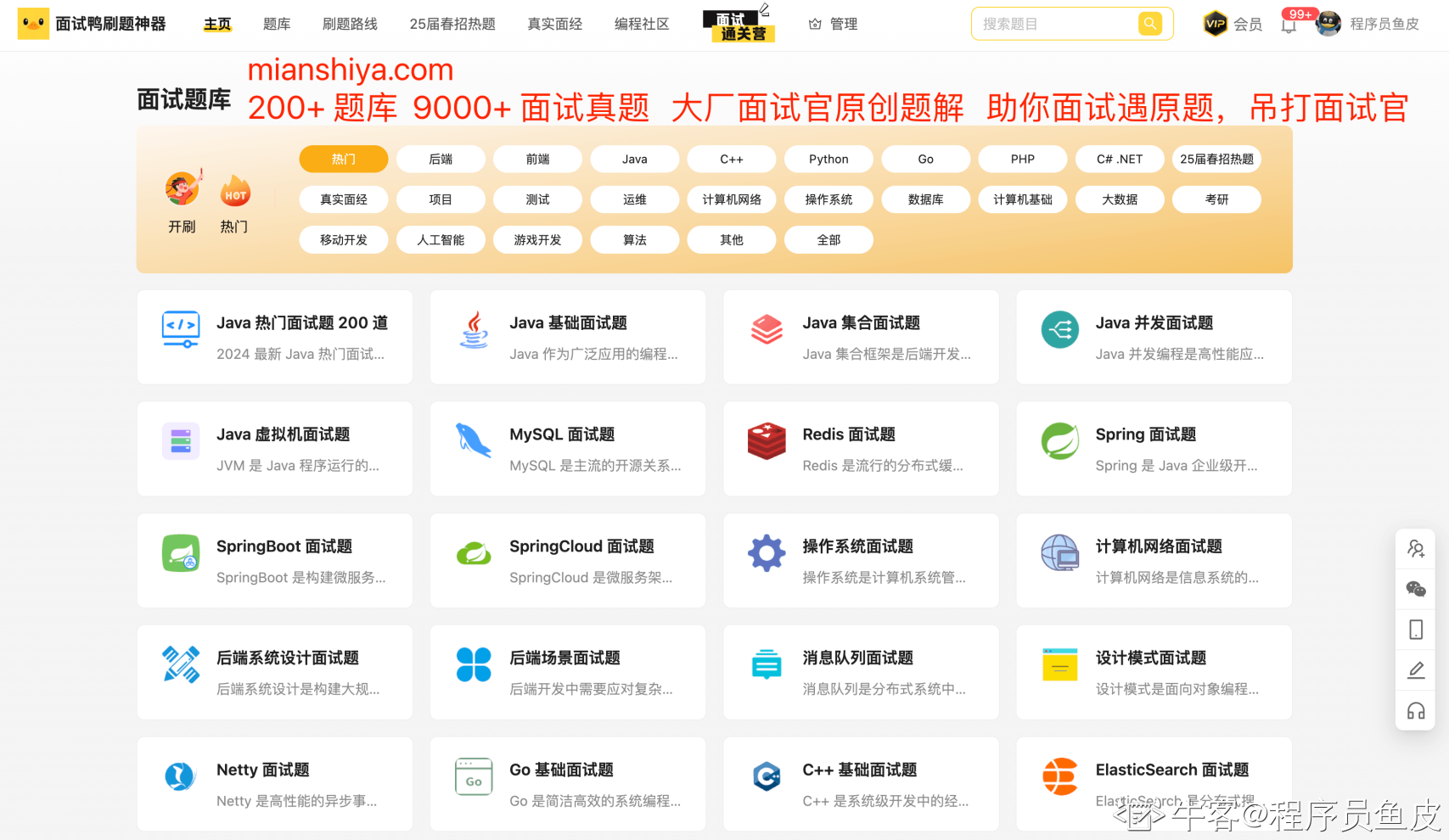 此外,可以广泛搜集面经,了解目标公司的面试特点和常见问题,提前做好准备。 模拟面试条件允许的话,我建议大家多参加模拟面试、或观看别人模拟面试的视频。一方面可以熟悉面试流程,消除真实面试时的紧张感,另外也能通过看别人在模拟面试中回答问题的思路、语言表达技巧,对照自身进行改进。 我们编程导航就有上百场真实的模拟面试录制视频,也定期挑选一些平台上活跃的鱼友发起免费的模拟面试,感兴趣的同学可以利用好这些资源。