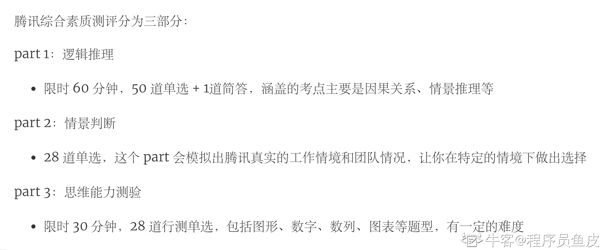综合素质测评的准备难度还是挺大的,只能通过大量真题的练习来不断强化,尤其是考察逻辑思维能力的推理题,不是靠临时抱佛脚就能答出来的。所以我建议大家在平时多从不同的角度来思考问题,多跟别人沟通并且学会清晰表达自己的观点,可以综合提升自己的思考能力和应变能力。 由于笔试考察范围存在不确定性,大家一定要积极主动地从多渠道获取信息。一些公司会在招聘信息中列出考试范围,也有部分公司会在面试前的沟通环节明确告知具体要求;此外,还可以通过搜索公司历年的笔试真题来了解。