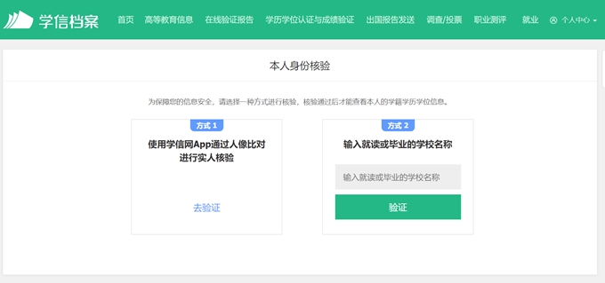 第三步:根据提示填写身份验证信息,确认验证。进入求职者个人信息页面。